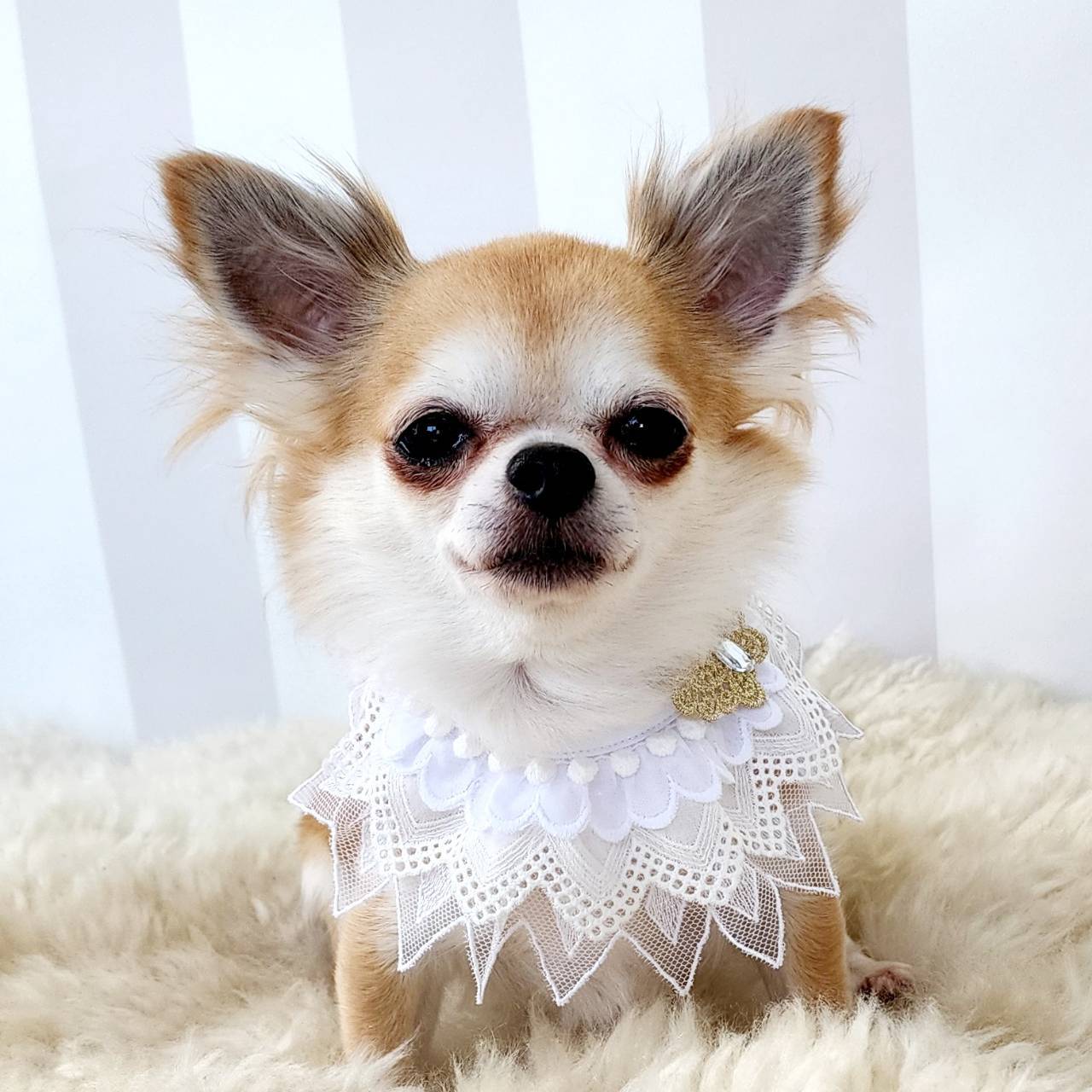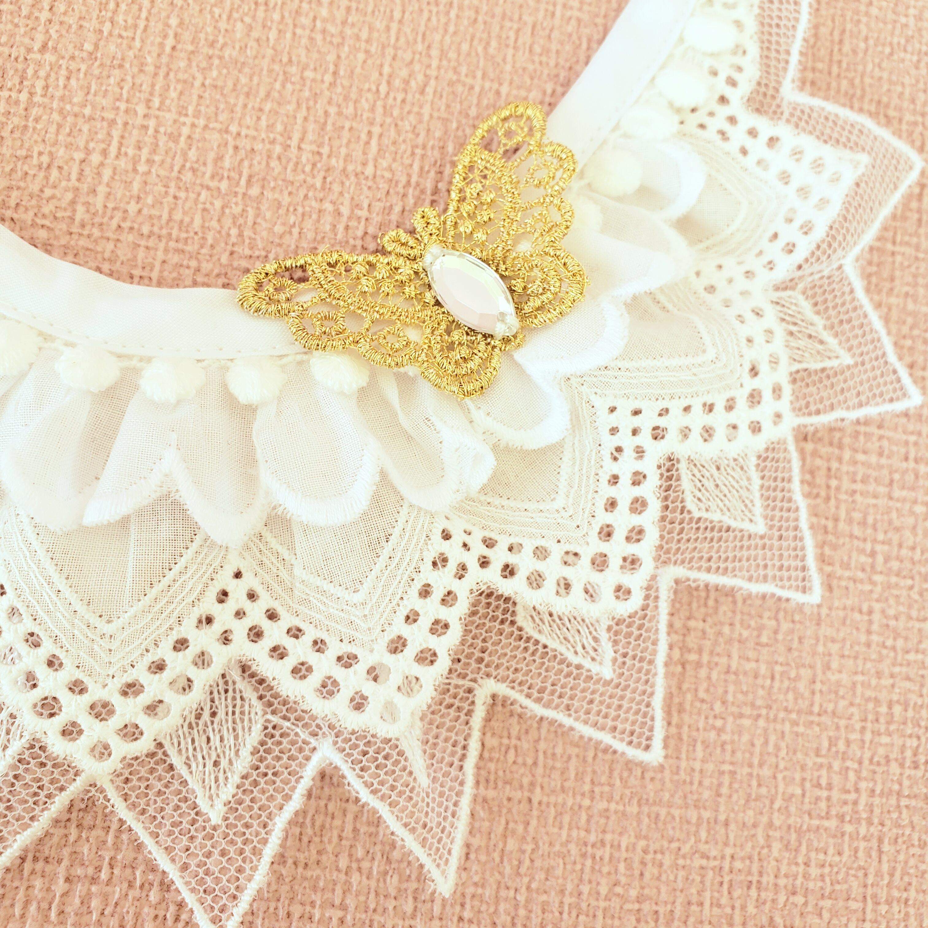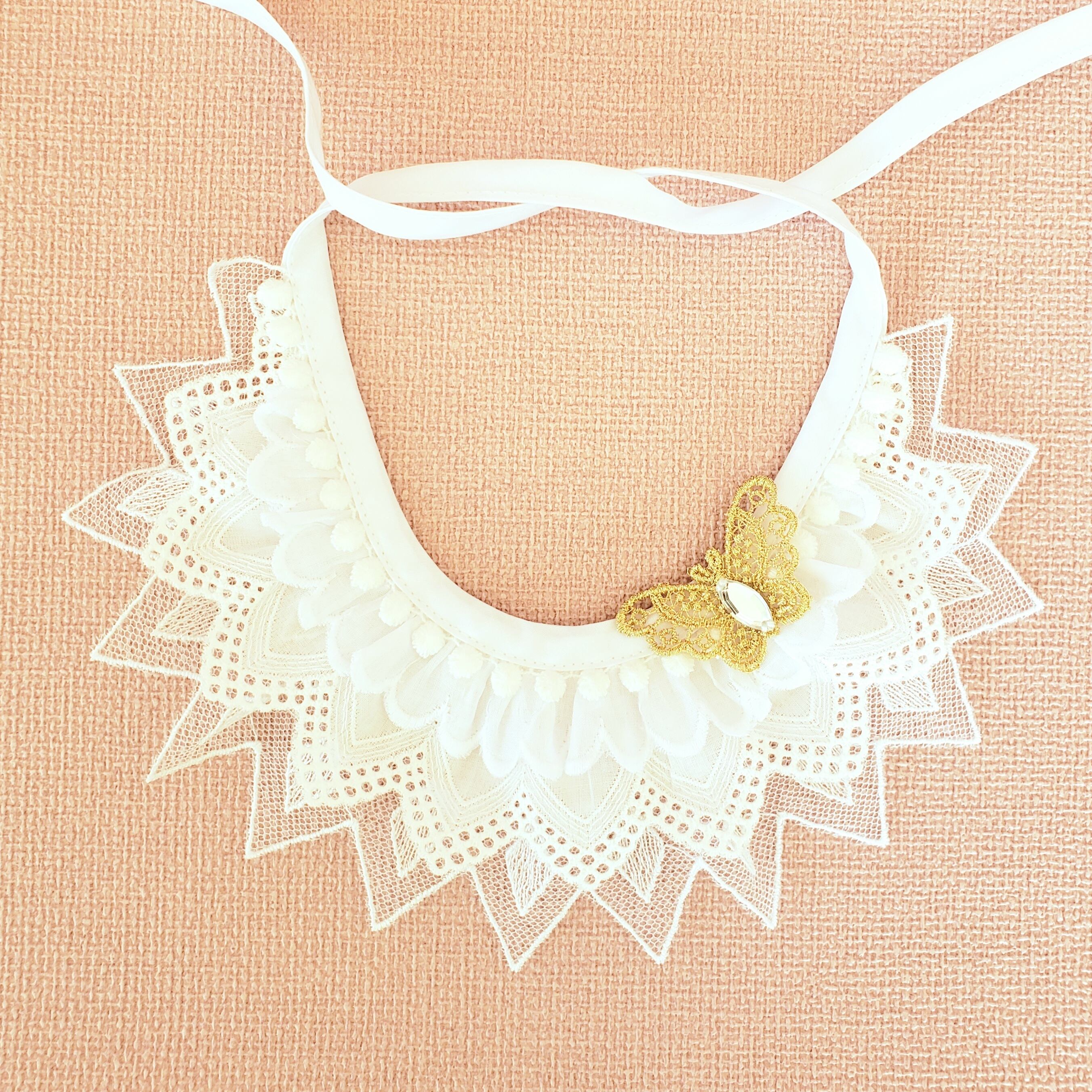 ホワイトのレースがふんわり可愛いつけ襟です。